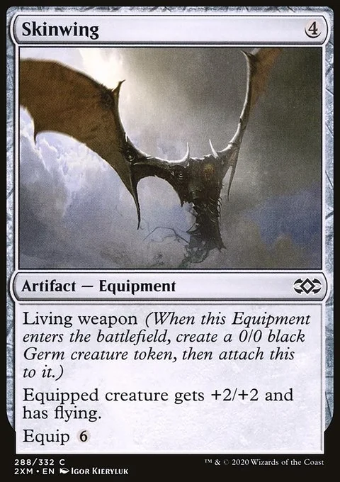 Living weapon (When this Equipment enters the battlefield, create a 0/0 black Germ creature token, then attach this to it.) Equipped creature gets +2/+2 and has flying. Equip {6}