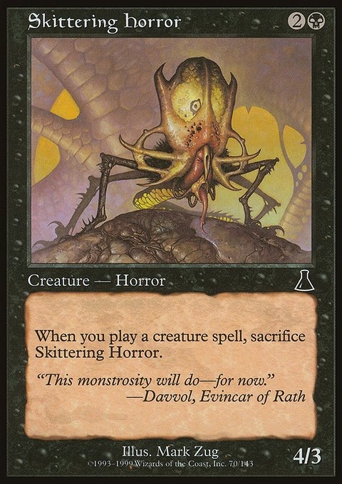 When you cast a creature spell, sacrifice Skittering Horror.