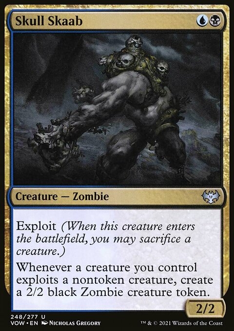 Exploit (When this creature enters the battlefield, you may sacrifice a creature.) Whenever a creature you control exploits a nontoken creature, create a 2/2 black Zombie creature token.