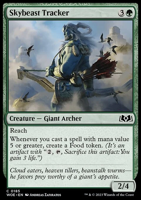 Reach Whenever you cast a spell with mana value 5 or greater, create a Food token. (It's an artifact with "{2}, {T}, Sacrifice this token: You gain 3 life.")