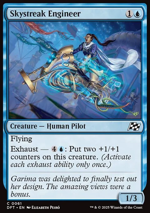 Flying Exhaust — {4}{U}: Put two +1/+1 counters on this creature. (Activate each exhaust ability only once.)