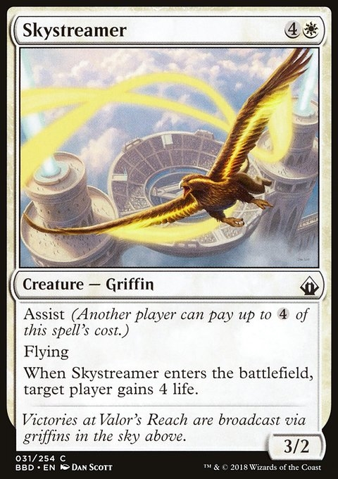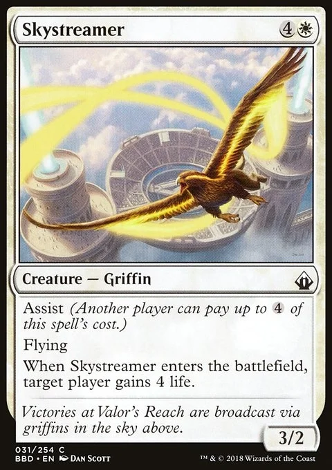 Assist (Another player can pay up to {4} of this spell's cost.) Flying When this creature enters, target player gains 4 life.