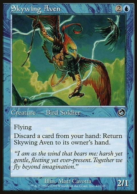 Flying Discard a card: Return Skywing Aven to its owner's hand.