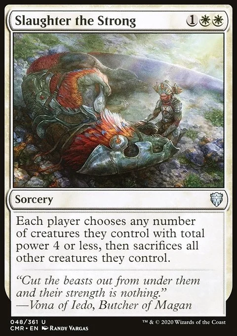 Each player chooses any number of creatures they control with total power 4 or less, then sacrifices all other creatures they control.