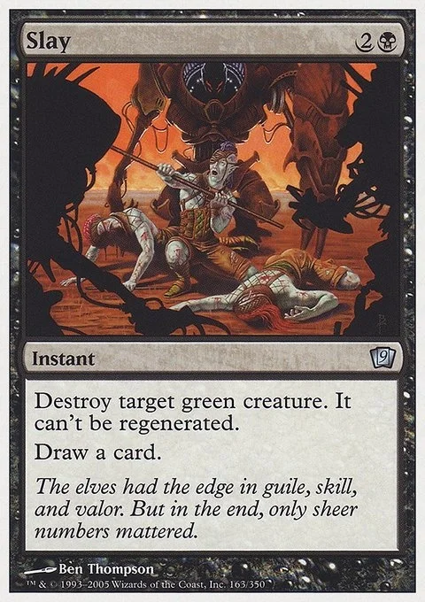 Destroy target green creature. It can’t be regenerated. Draw a card.