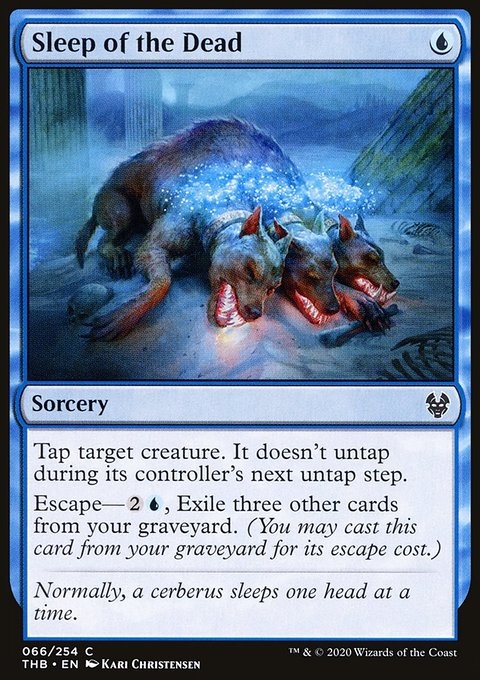 Tap target creature. It doesn't untap during its controller's next untap step. Escape—{2}{U}, Exile three other cards from your graveyard. (You may cast this card from your graveyard for its escape cost.)