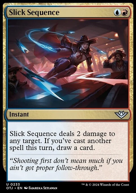 Slick Sequence deals 2 damage to any target. If you've cast another spell this turn, draw a card.