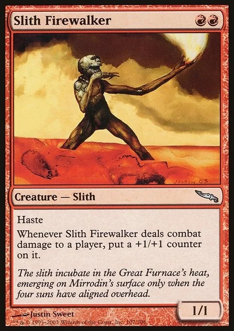 Haste Whenever Slith Firewalker deals combat damage to a player, put a +1/+1 counter on it.