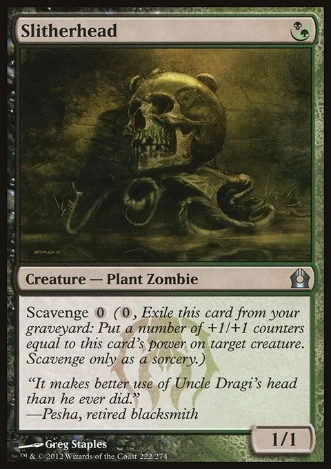 Scavenge {0} ({0}, Exile this card from your graveyard: Put a number of +1/+1 counters equal to this card's power on target creature. Scavenge only as a sorcery.)