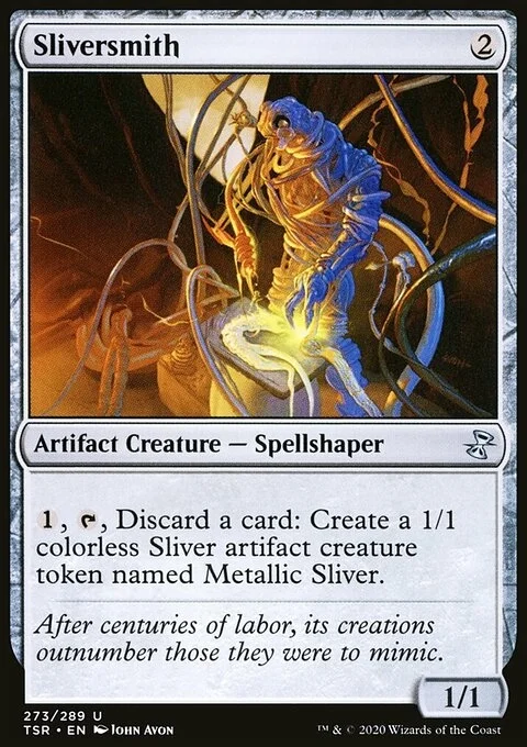 {1}, {T}, Discard a card: Create a 1/1 colorless Sliver artifact creature token named Metallic Sliver.