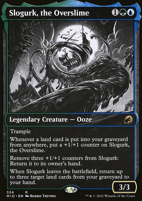 Whenever a land card is put into your graveyard from anywhere, put a +1/+1 counter on Slogurk, the Overslime.
