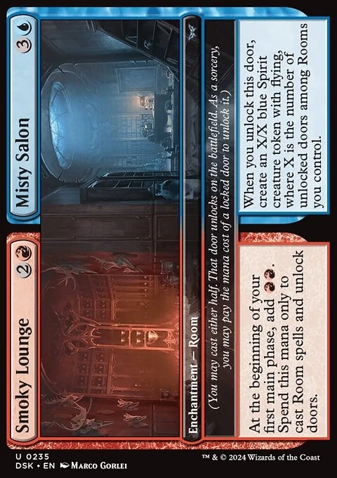 (You may cast either half. That door unlocks on the battlefield. As a sorcery, you may pay the mana cost of a locked door to unlock it.)