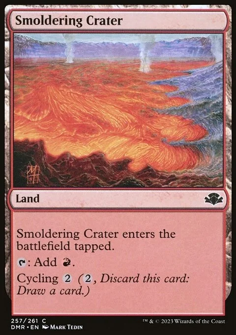 This land enters tapped. {T}: Add {R}. Cycling {2} ({2}, Discard this card: Draw a card.)