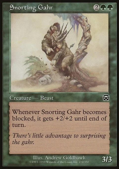 Whenever Snorting Gahr becomes blocked, it gets +2/+2 until end of turn.