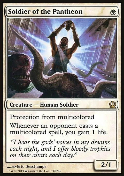 Protection from multicolored Whenever an opponent casts a multicolored spell, you gain 1 life.
