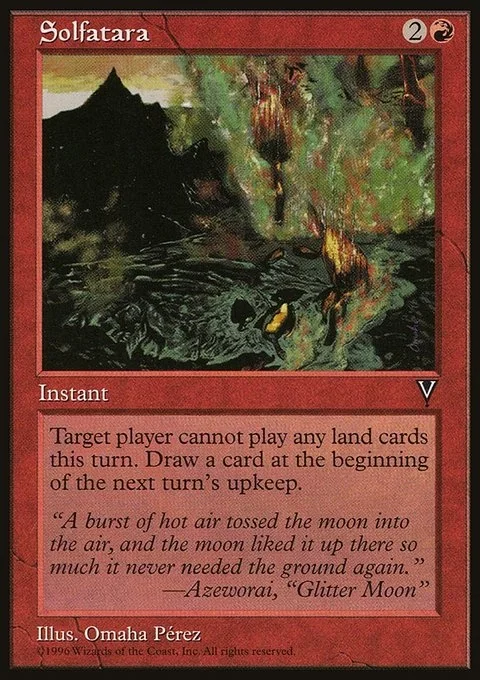 Target player can't play lands this turn. Draw a card at the beginning of the next turn's upkeep.