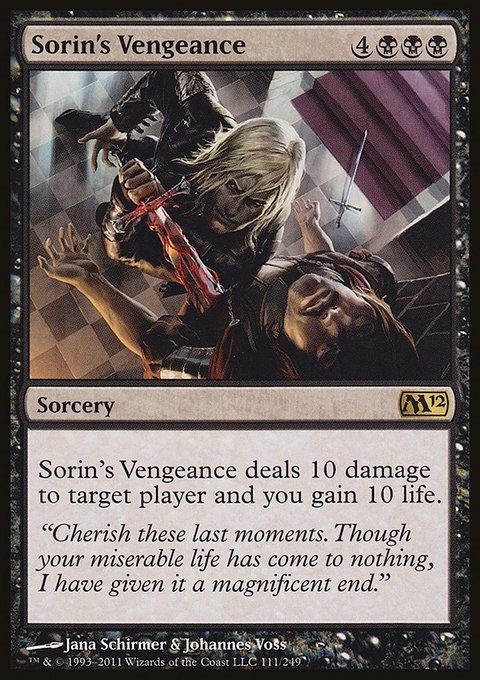 Sorin's Vengeance deals 10 damage to target player and you gain 10 life.