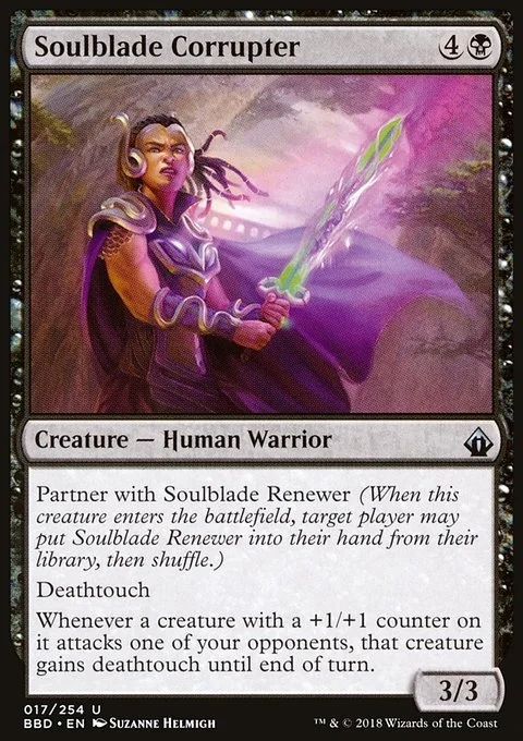 Partner with Soulblade Renewer (When this creature enters the battlefield, target player may put Soulblade Renewer into their hand from their library, then shuffle.)