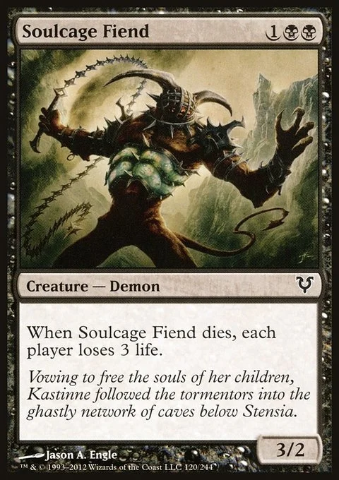 When Soulcage Fiend dies, each player loses 3 life.