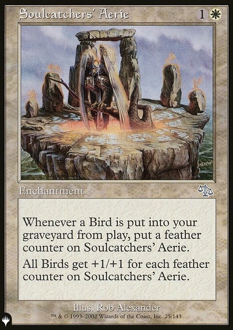 Whenever a Bird is put into your graveyard from the battlefield, put a feather counter on this enchantment. Bird creatures get +1/+1 for each feather counter on this enchantment.