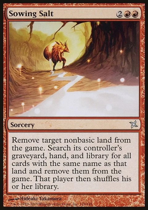 Exile target nonbasic land. Search its controller's graveyard, hand, and library for all cards with the same name as that land and exile them. Then that player shuffles.