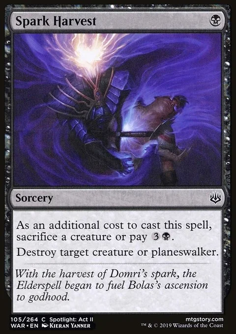 As an additional cost to cast this spell, sacrifice a creature or pay {3}{B}. Destroy target creature or planeswalker.