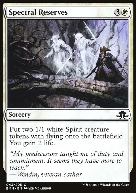Create two 1/1 white Spirit creature tokens with flying. You gain 2 life.