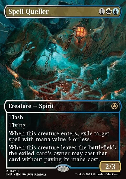 Flash Flying When Spell Queller enters, exile target spell with mana value 4 or less. When Spell Queller leaves the battlefield, the exiled card's owner may cast that card without paying its mana cost.