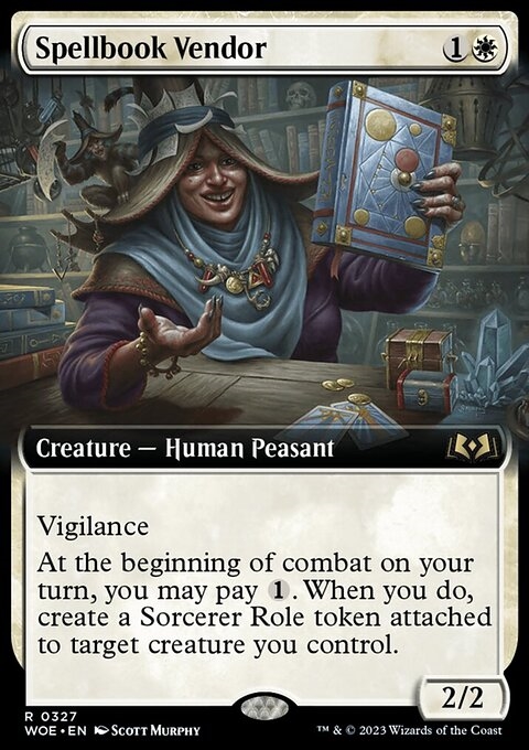 At the beginning of combat on your turn, you may pay {1}. When you do, create a Sorcerer Role token attached to target creature you control. (If you control another Role on it, put that one into the graveyard. Enchanted creature gets +1/+1 and has "Whenever this creature attacks, scry 1.")