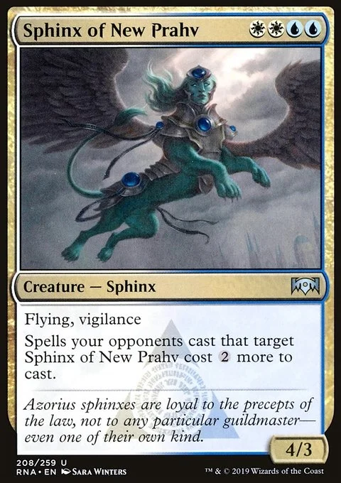 Flying, vigilance Spells your opponents cast that target Sphinx of New Prahv cost {2} more to cast.