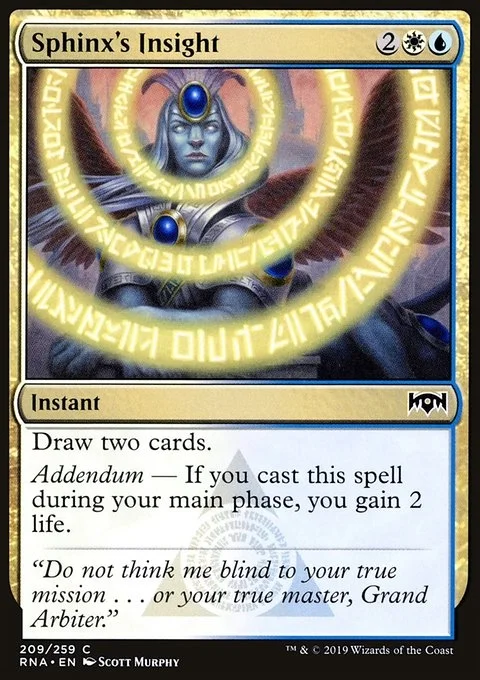 Draw two cards. Addendum — If you cast this spell during your main phase, you gain 2 life.