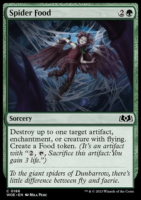 Destroy up to one target artifact, enchantment, or creature with flying. Create a Food token. (It's an artifact with "{2}, {T}, Sacrifice this token: You gain 3 life.")