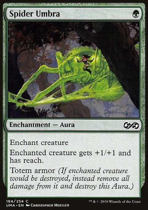 Enchant creature Enchanted creature gets +1/+1 and has reach. (It can block creatures with flying.) Umbra armor (If enchanted creature would be destroyed, instead remove all damage from it and destroy this Aura.)