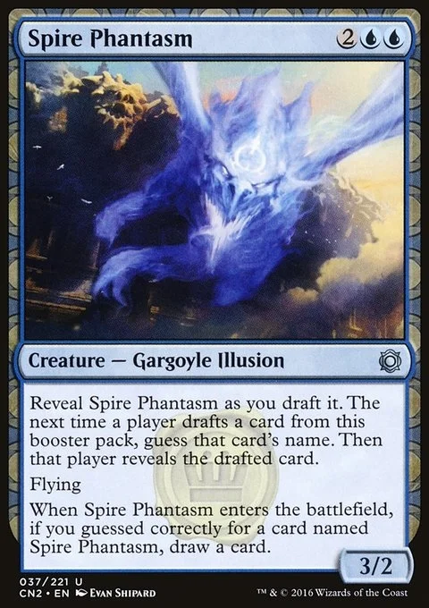 Reveal Spire Phantasm as you draft it. The next time a player drafts a card from this booster pack, guess that card's name. Then that player reveals the drafted card.