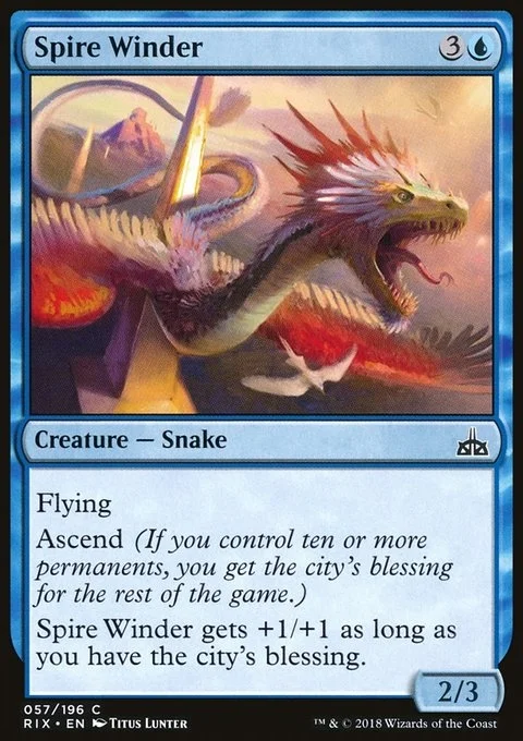 Flying Ascend (If you control ten or more permanents, you get the city's blessing for the rest of the game.) This creature gets +1/+1 as long as you have the city's blessing.