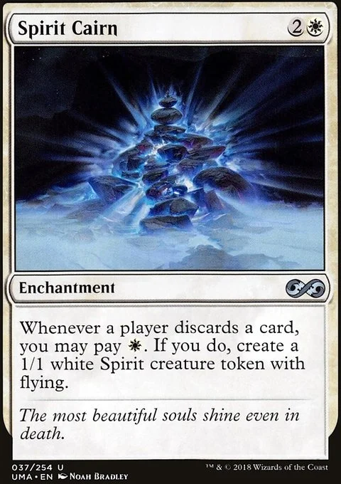 Whenever a player discards a card, you may pay {W}. If you do, create a 1/1 white Spirit creature token with flying.
