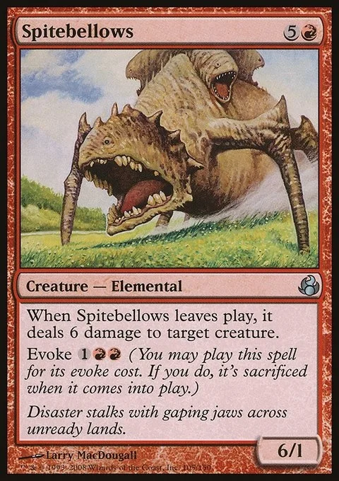 When Spitebellows leaves play, it deals 6 damage to target creature.
