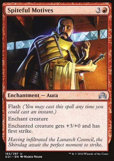 Flash (You may cast this spell any time you could cast an instant.) Enchant creature Enchanted creature gets +3/+0 and has first strike.
