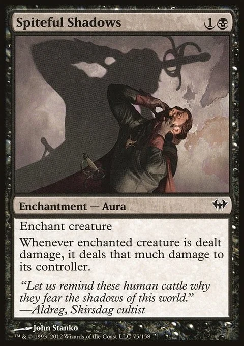 Enchant creature Whenever enchanted creature is dealt damage, it deals that much damage to its controller.