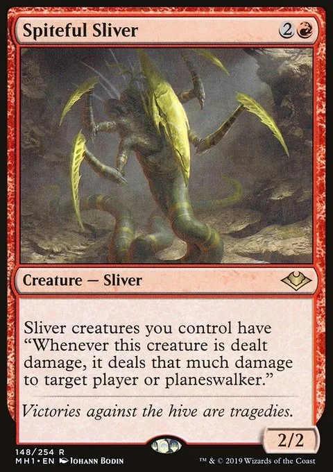Sliver creatures you control have "Whenever this creature is dealt damage, it deals that much damage to target player or planeswalker."