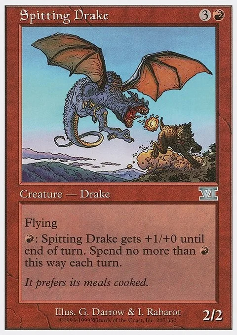 R: Spitting Drake gets +1/+0 until end of turn. Spend no more than R this way each turn.