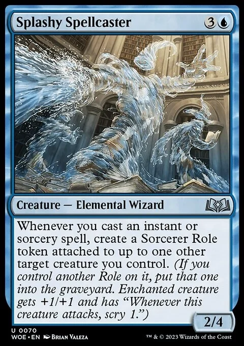 Whenever you cast an instant or sorcery spell, create a Sorcerer Role token attached to up to one other target creature you control. (If you control another Role on it, put that one into the graveyard. Enchanted creature gets +1/+1 and has "Whenever this creature attacks, scry 1.")