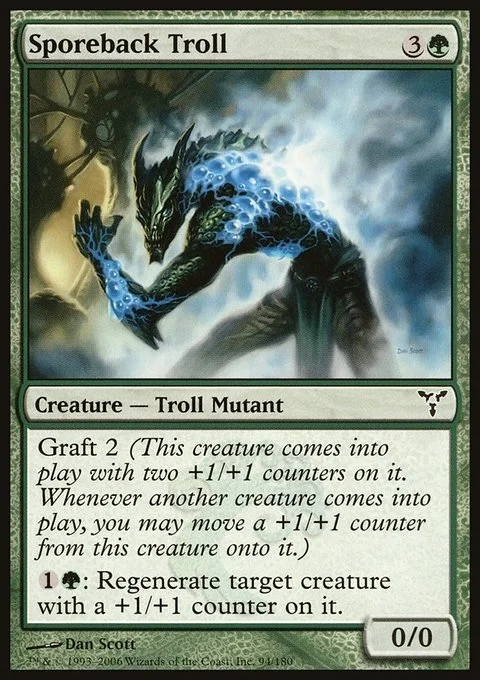 Graft 2 (This creature enters with two +1/+1 counters on it. Whenever another creature enters, you may move a +1/+1 counter from this creature onto it.) {1}{G}: Regenerate target creature with a +1/+1 counter on it.