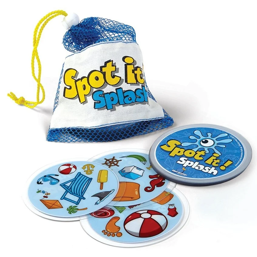 Make a splash wherever your adventures take you with the durable waterproof version of Spot it! Surf and sand are no match for the waterproof playing cards, so you can play all five game variations any time, any place. Spot the match between the most card combinations to win! No matter where you play, the summery symbols will put everyone in the mood for fun in the sun. Stash the cards in the waterproof travel bag and soak up the excitement on the go!