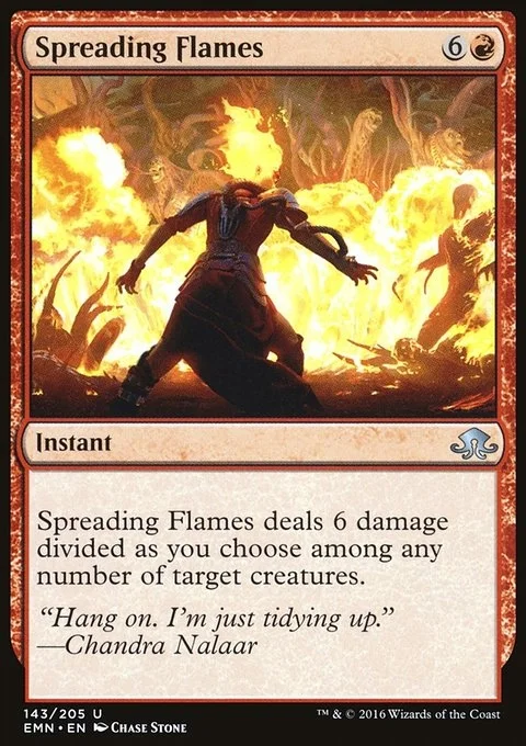 Spreading Flames deals 6 damage divided as you choose among any number of target creatures.