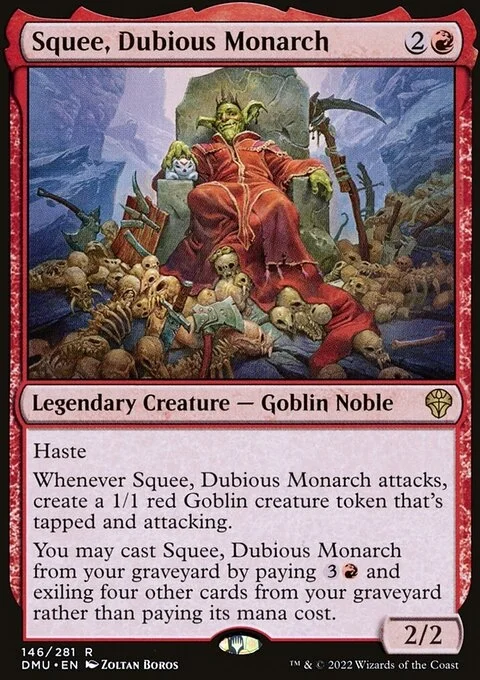You may cast Squee, Dubious Monarch from your graveyard by paying {3}{R} and exiling four other cards from your graveyard rather than paying its mana cost.