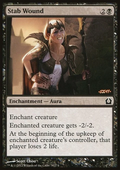 Enchant creature Enchanted creature gets -2/-2. At the beginning of the upkeep of enchanted creature's controller, that player loses 2 life.
