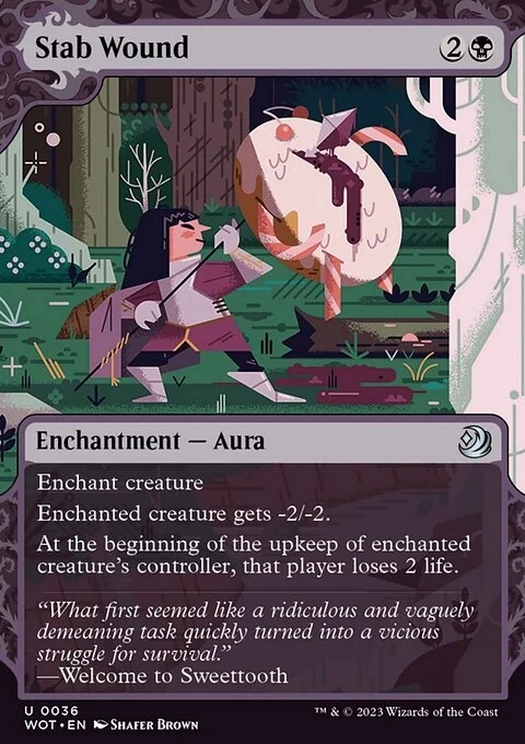 Enchant creature Enchanted creature gets -2/-2. At the beginning of the upkeep of enchanted creature's controller, that player loses 2 life.