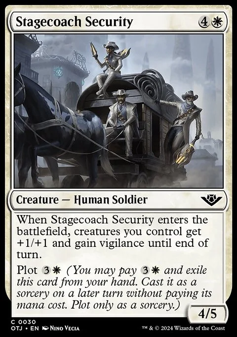 When this creature enters, creatures you control get +1/+1 and gain vigilance until end of turn. Plot {3}{W} (You may pay {3}{W} and exile this card from your hand. Cast it as a sorcery on a later turn without paying its mana cost. Plot only as a sorcery.)
