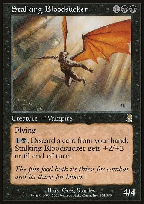 Flying {1}{B}, Discard a card: Stalking Bloodsucker gets +2/+2 until end of turn.